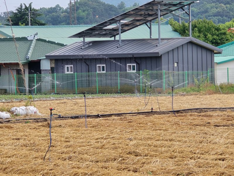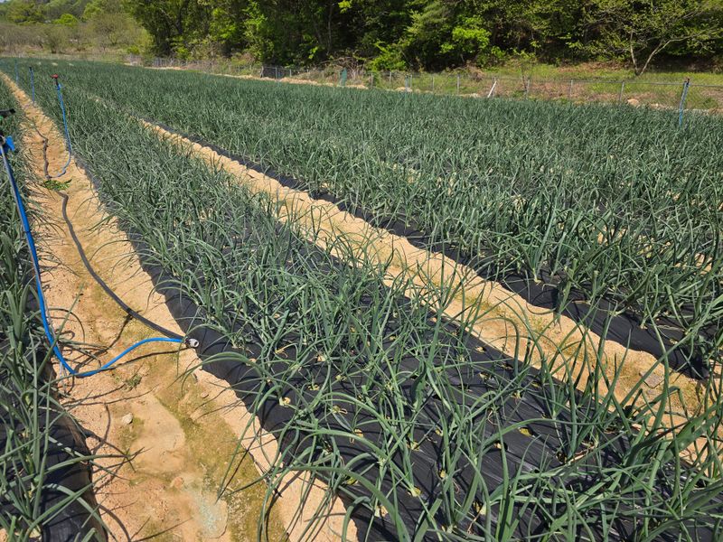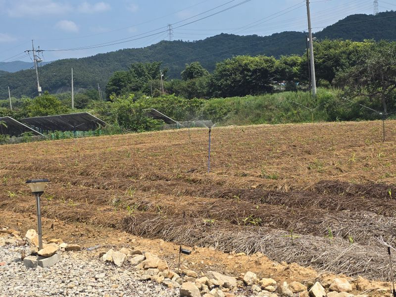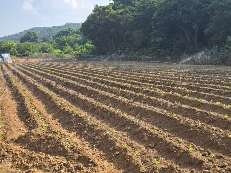 양파 밭 일부 스프링쿨러 돌려줌 생강 밭 일부 스프링쿨러 돌려줌