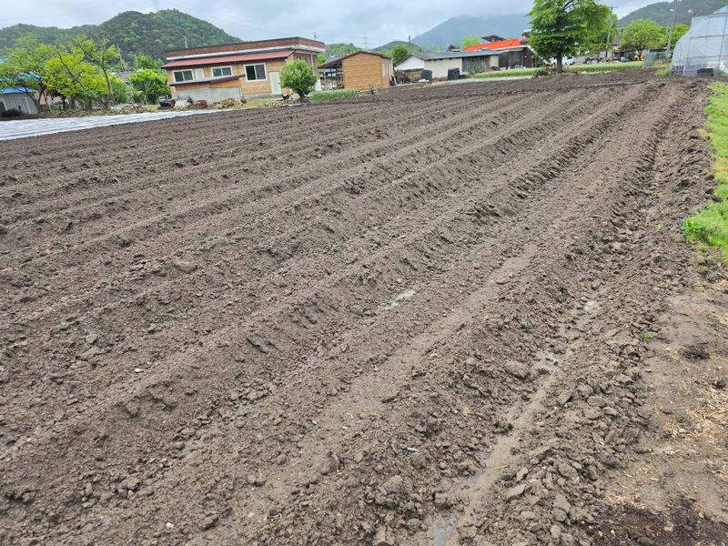 생강 심을데 돌주워내고 마지기당 복합비료 한포 그리고 오레가 밭 작물 3포씩 뿌려줌