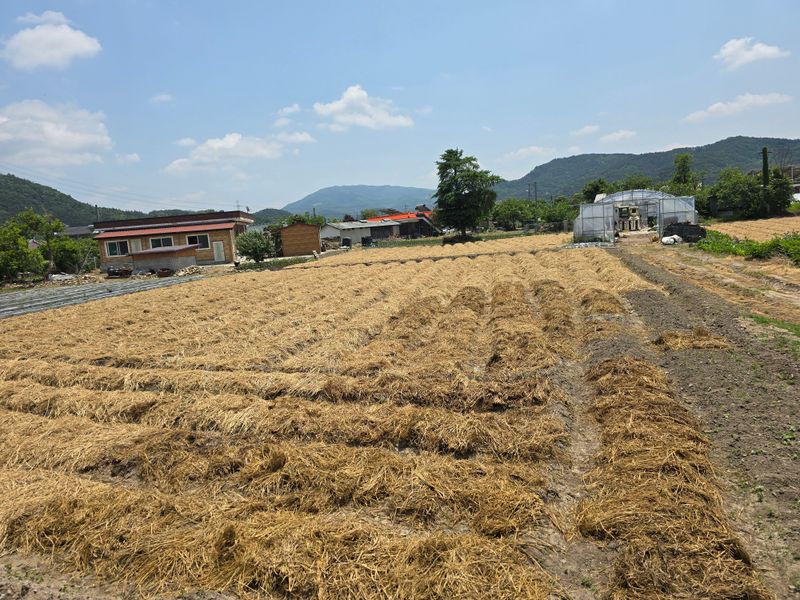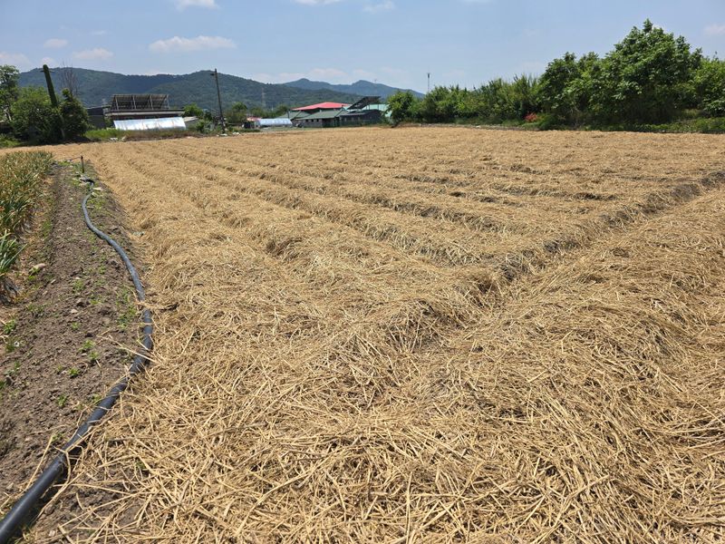 생강 밭 볏짚 덮음 볍씨종자 건짐