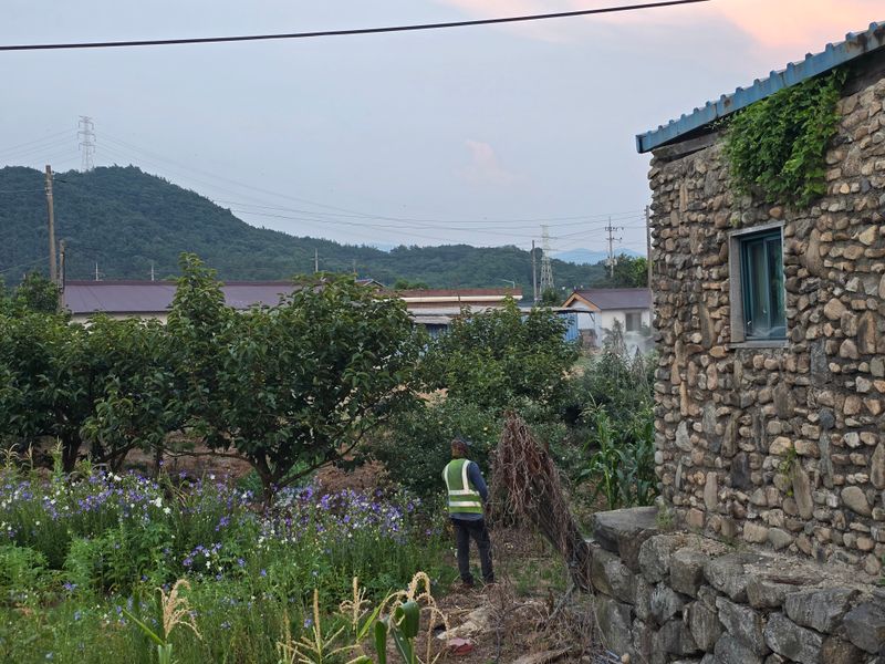 주평 귀미란 철탑 큰배미 금암리 논 논두렁 풀약 줌 생강 밭 일부 제초작업 라즈 리백 2명 작업함