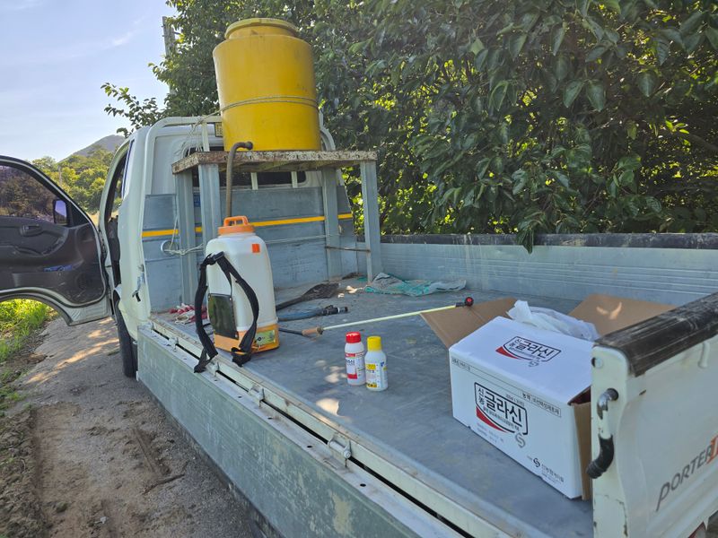 사무실 조선생님밭 쟁기질 농약사에서 감나무 소독약사옴