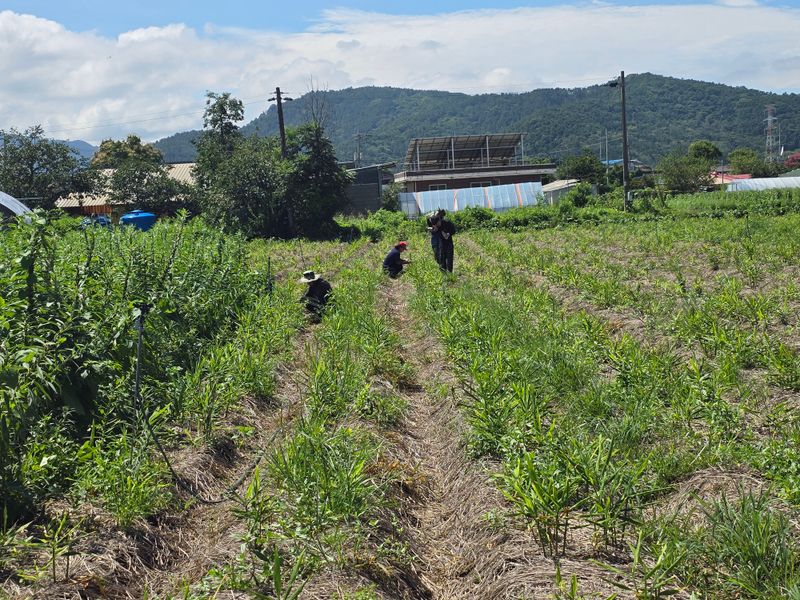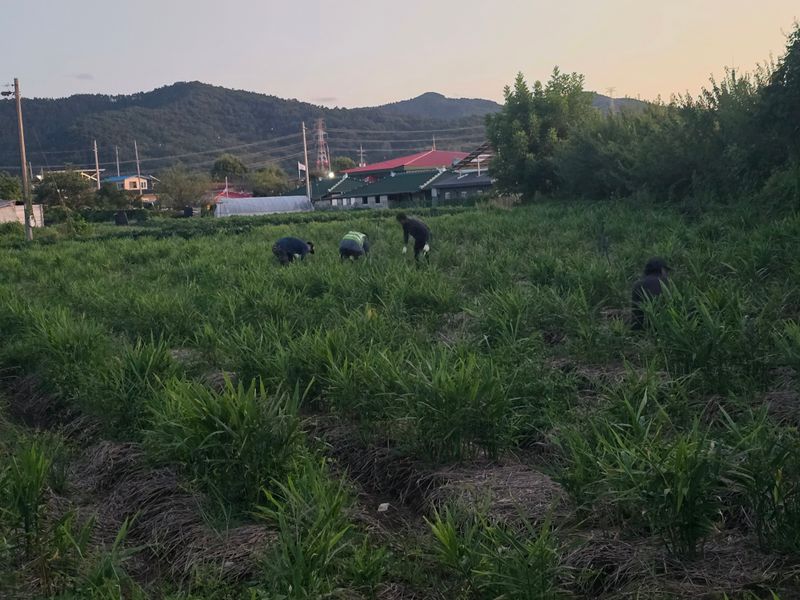 생강 캠 북면 아주머니 7명 외국인 남자 2 명 작업함