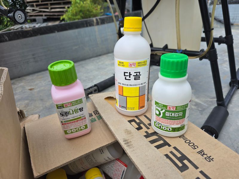 생강 심을데 티나골드드론으로 뿌리고 하우스 살충제 살균제 붕사 뿌리고 고추 골탐