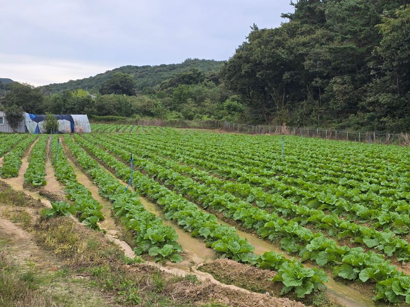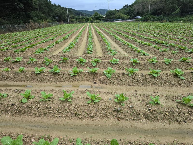 청도리 배추 심음50판 외국인 7명작업 오전에 마침