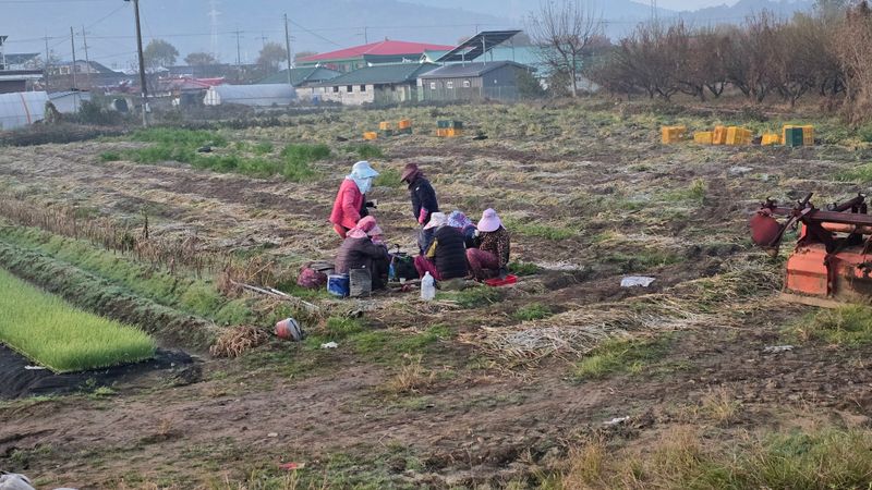 배추 밭 고랑 일부 풀약 줌 양파 모판 깜 라즈외3명 일함