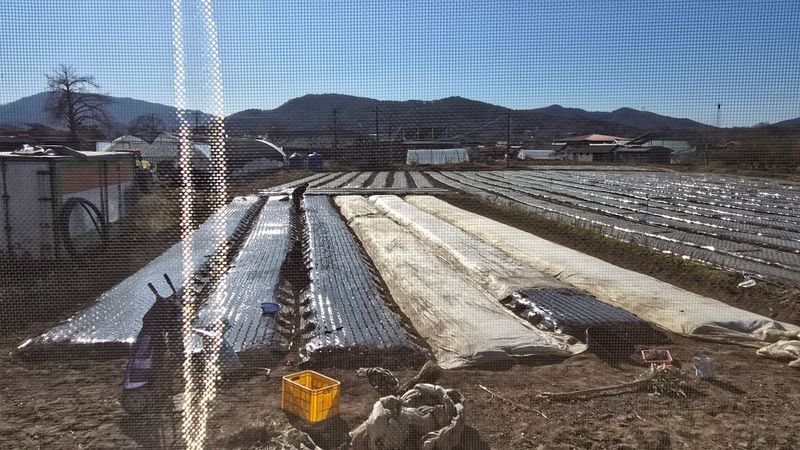 마늘 심을데 살충제 살균제 뿌리고 두둑지어서 비닐 피복함 아버지 하고