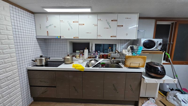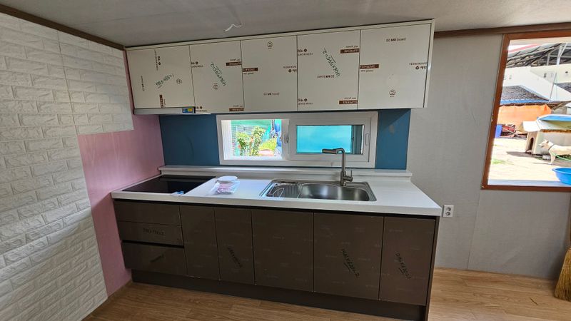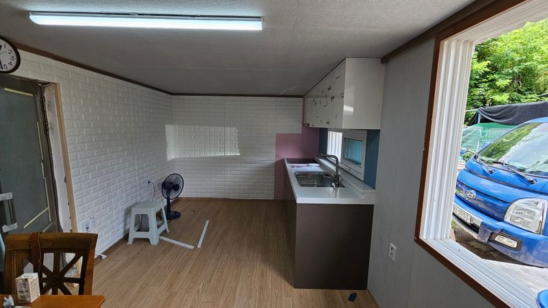 ㅡ.포도 알속기 5번째 줄 ㅡ. 주방처마 스치로폴 작업