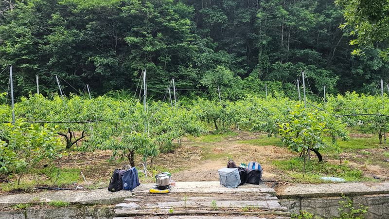ㅡ. 복숭밭 원액제초제 살포 ㅡ. 포도순 치기 ㅡ. 물 1시간반 관주. 포도축과 많음 ㅠㅠ ㅡ. 추풍령다녀옴