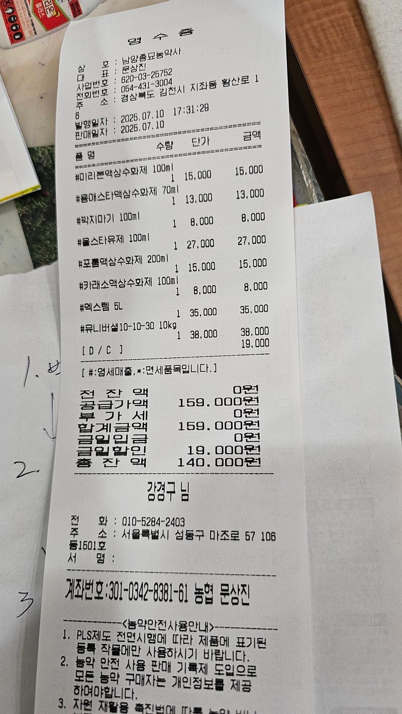 ㅡ. 알속기작업 9~14열까지하고 통로쪽 남음 ㅡ. 포도 질산칼슘 10kg 녹여 관주 ㅡ. 참깨밭 관수작업 65.000 원 구입