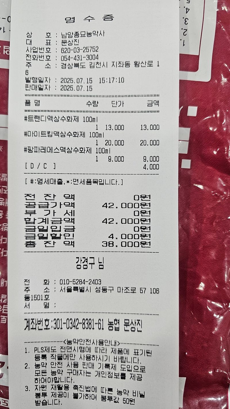 ㅡ. 복숭아약 구입 살포 (청출어람. 포류트나)살충제. 살균제 ㅡ오후 ㅡ. 포도 칼슘. 비린내 혼합살포함 200리터
