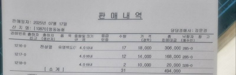 ㅡ. 포도봉지 쒸우기 7열 1골 ㅡ. 전일유명결과 나옴