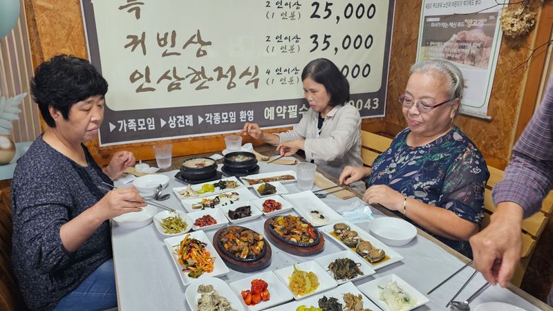 ㅡ. 계속 비옹. 냉장고와 김치냉장고 병학이랑 주방으로 이동설치 ㅡ. 용산 토담오리백숙 점심식사 ㅡ. 닭장 비세서 청소하고 지붕 다시 보강함 ㅡ 감타래 뒤 수로작업 함