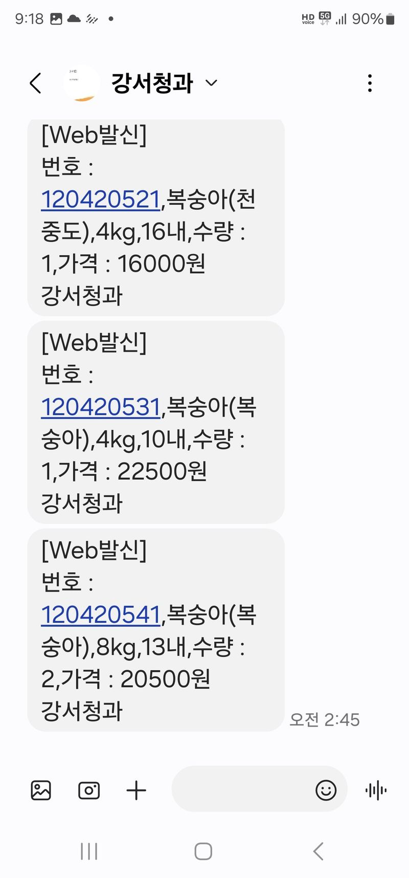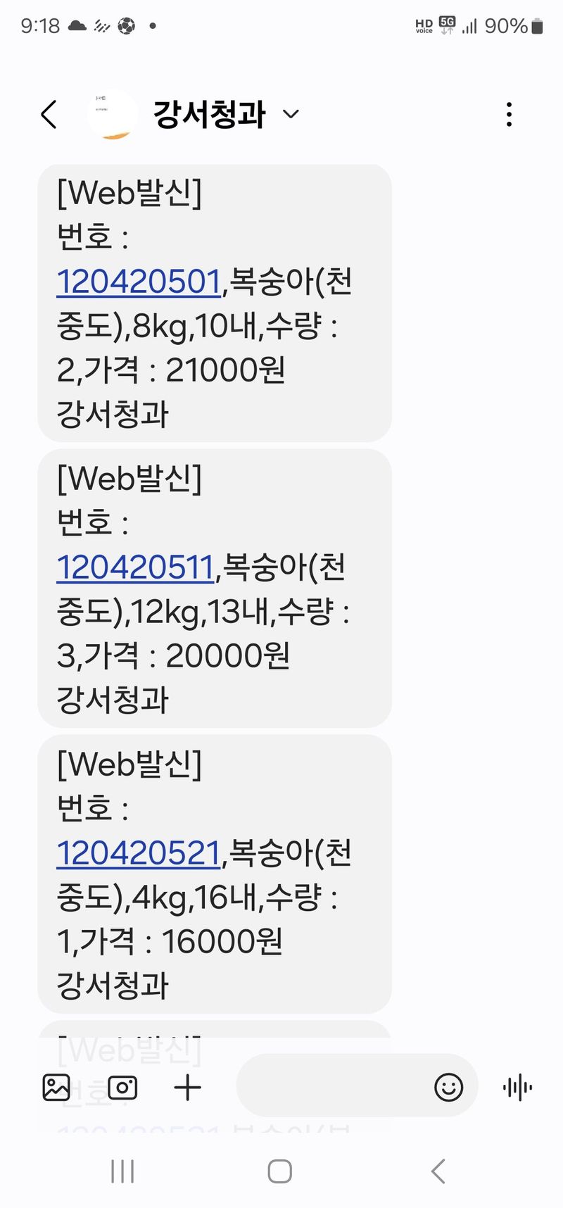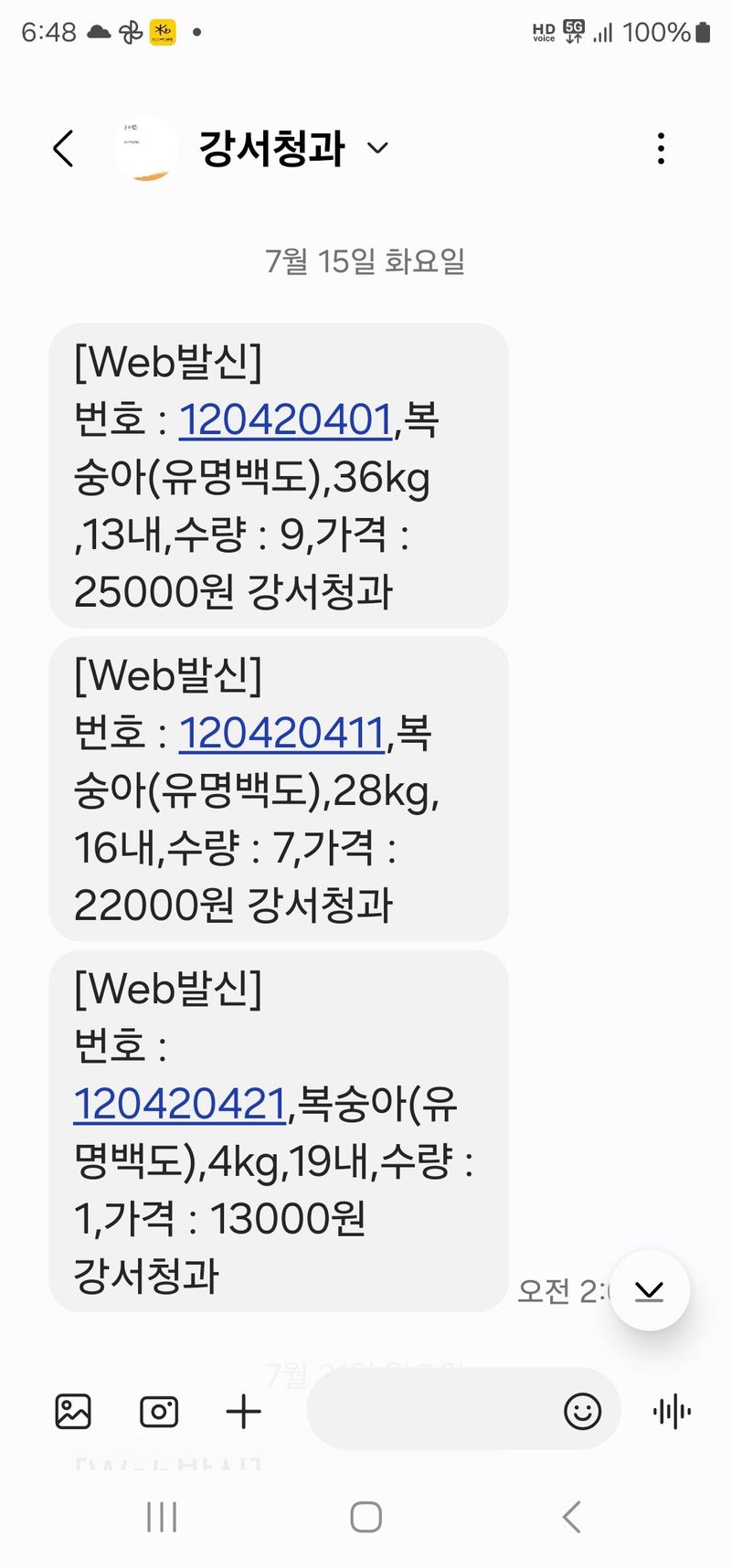 ㅡ. 유명6박스 초벌수확 농협보냄 ㅡ. 기스 청라보냄 ㅡ. 아랫복숭밭 약살포 사진