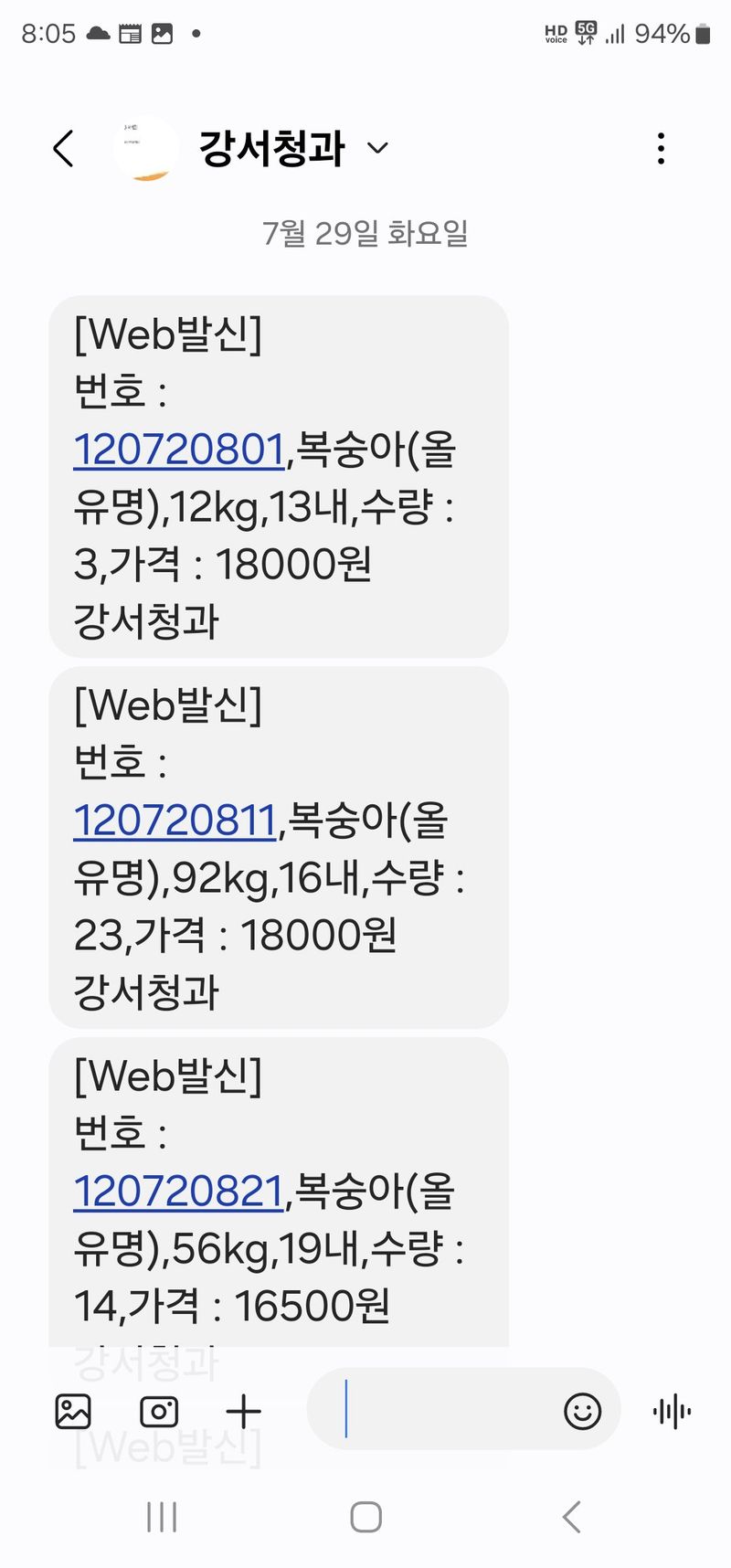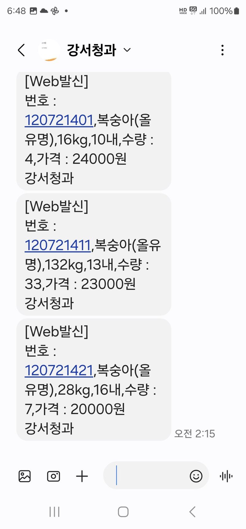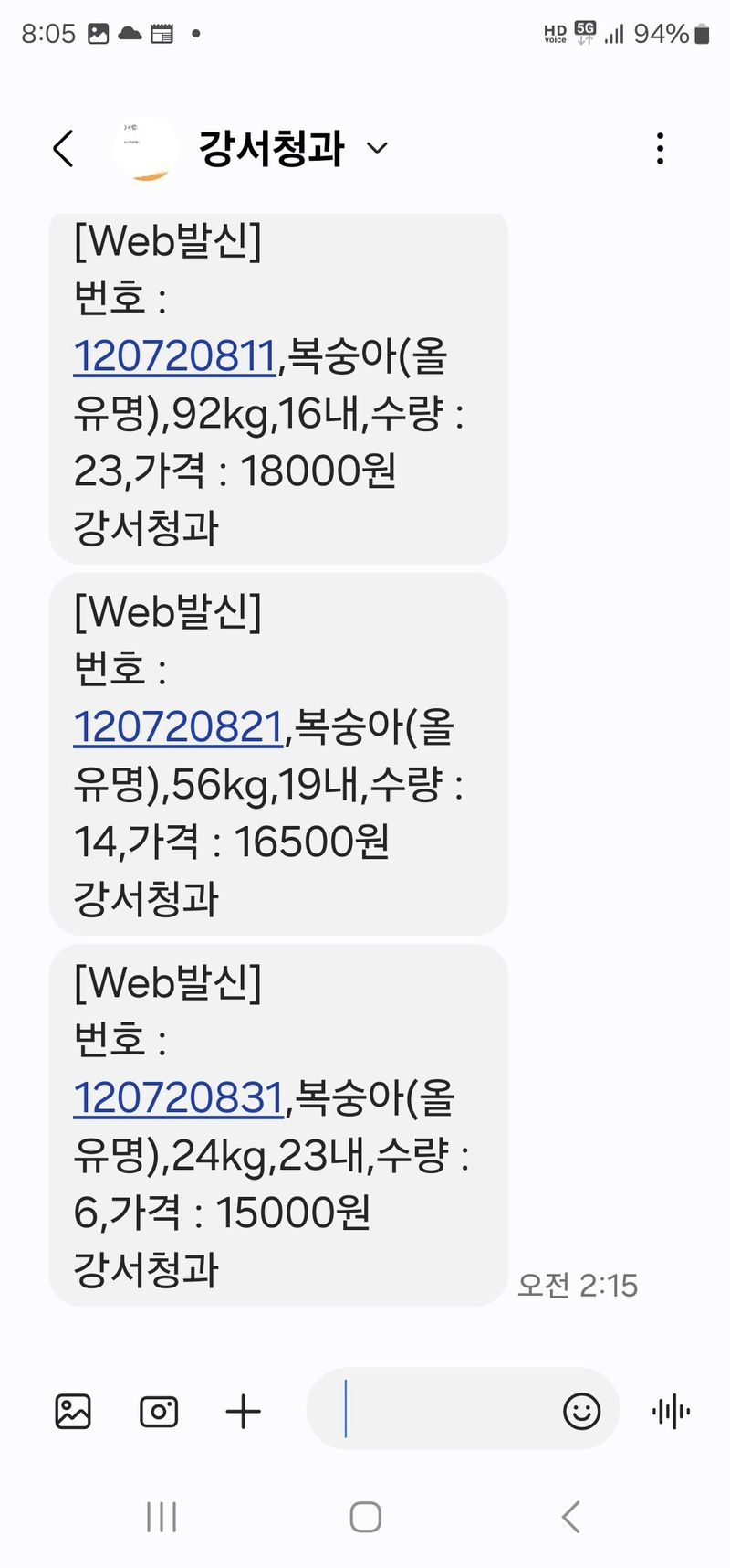 ㅡ. 유명6박스 초벌수확 농협보냄 ㅡ. 기스 청라보냄 ㅡ. 아랫복숭밭 약살포 사진