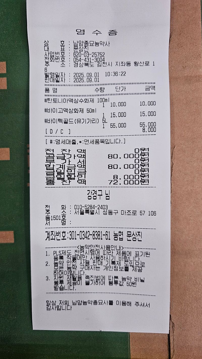ㅡ. 10개 추가구입 택배 18개소 보냄 ㅡ. 들께 모스킬 200리터 뿌림
