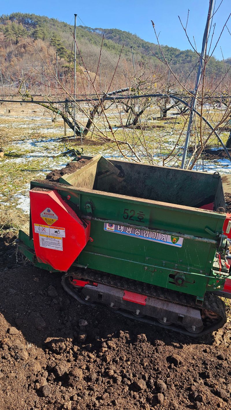 ㅡ. 영하 9도 퇴비살포 1골에 1케도 4단 주행1단 14줄 살포 ㅡ.