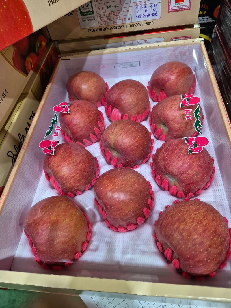 설대목 사과5킬로 작업중입니다 저희 함양군 서하는 광주 서부도매시장이랑 부산 반여시장으로 대부분 출하합니다 올해 사과가격이 만만치 않는데 농사짓는 입장에서는 결코 좋지만은 않네요 작년 물량에 반토막이라 그래도 올해는 좋을거라 보고 함내야지요