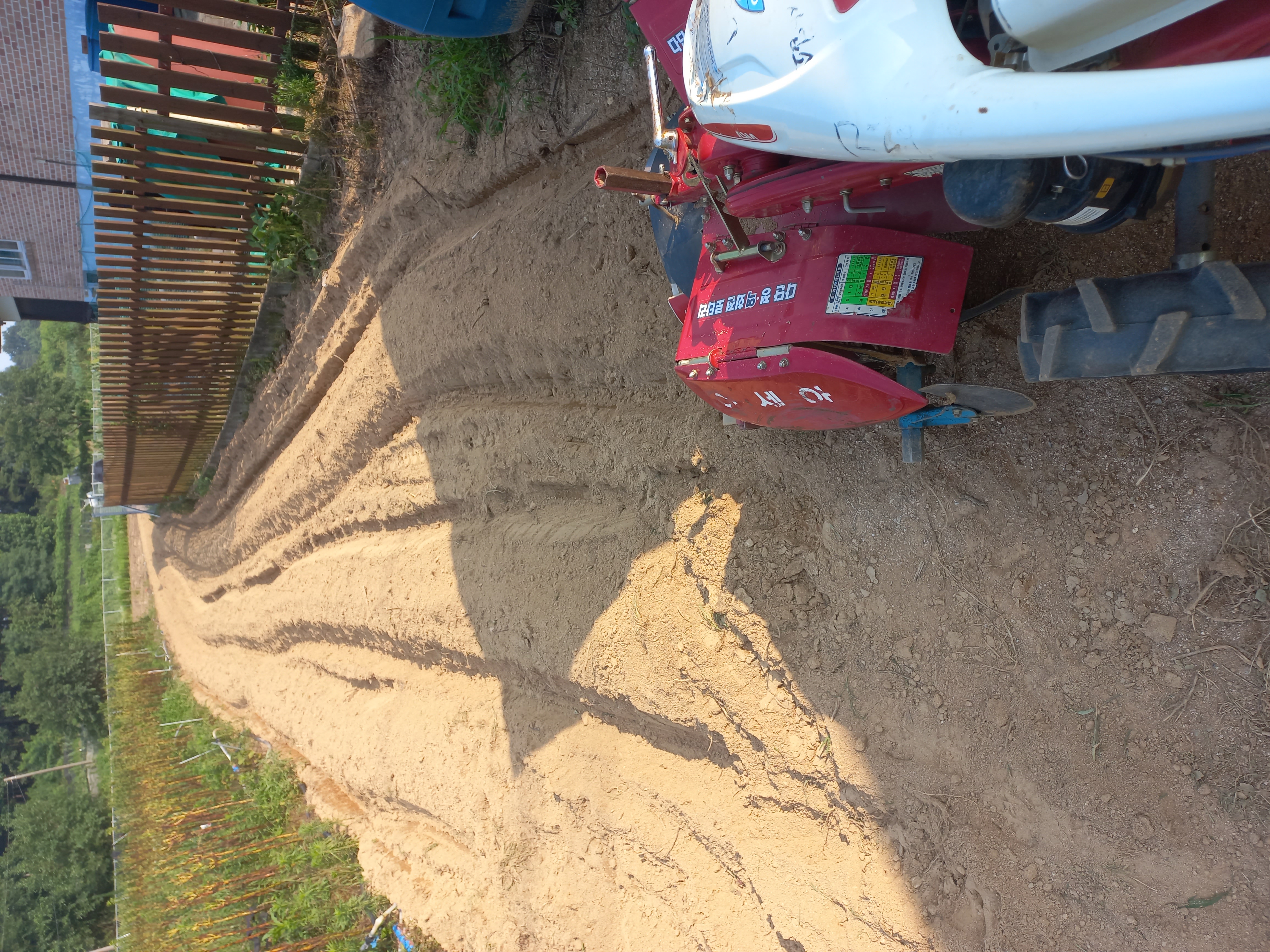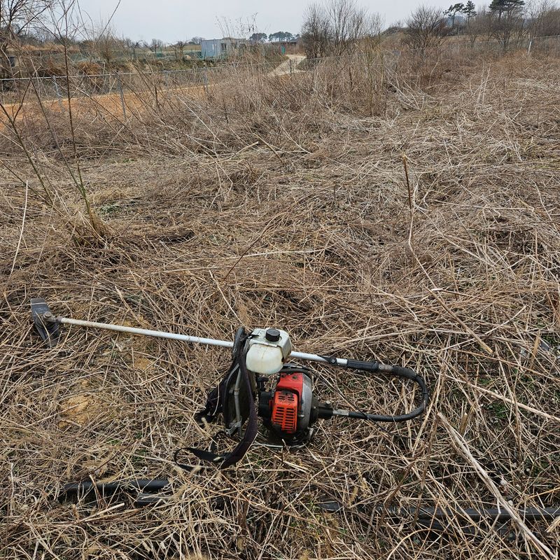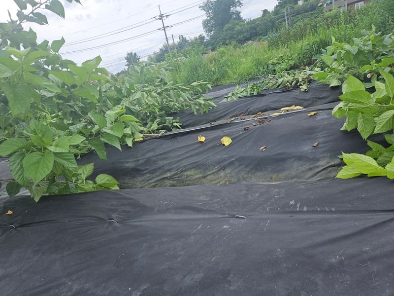제초망을 씌우지 않은 곳에 서리태를 심기 위해 관리기로 로타리 후진하다가 철망 펜스와 관리기 사이에 끼어 119를 불러 간신히 나왔습니다. 허벅지에 타박상과 머플러의 열화상을 조금 입었습니다