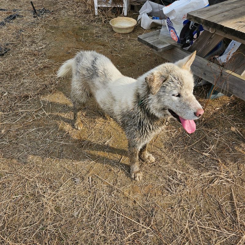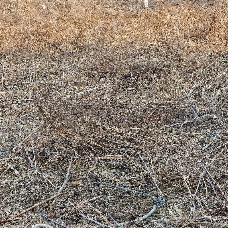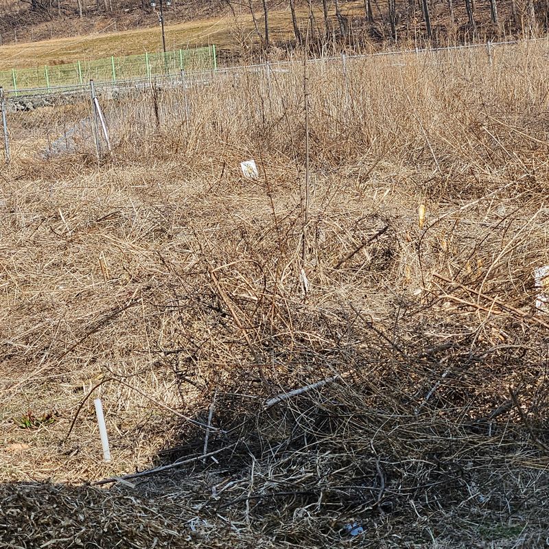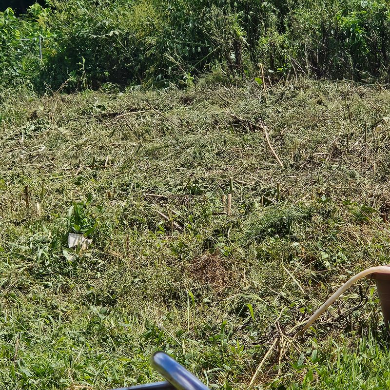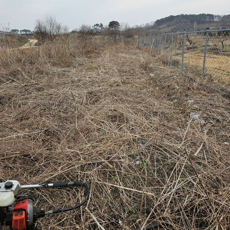 #영농일지 잔대밭에 작년풀대가 너무 많아 예초기 작업중입니다. 방울이는 개구멍으로 빠져나가더니 진흙으로 목욕하고 왔네요