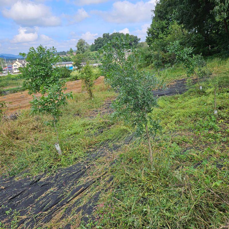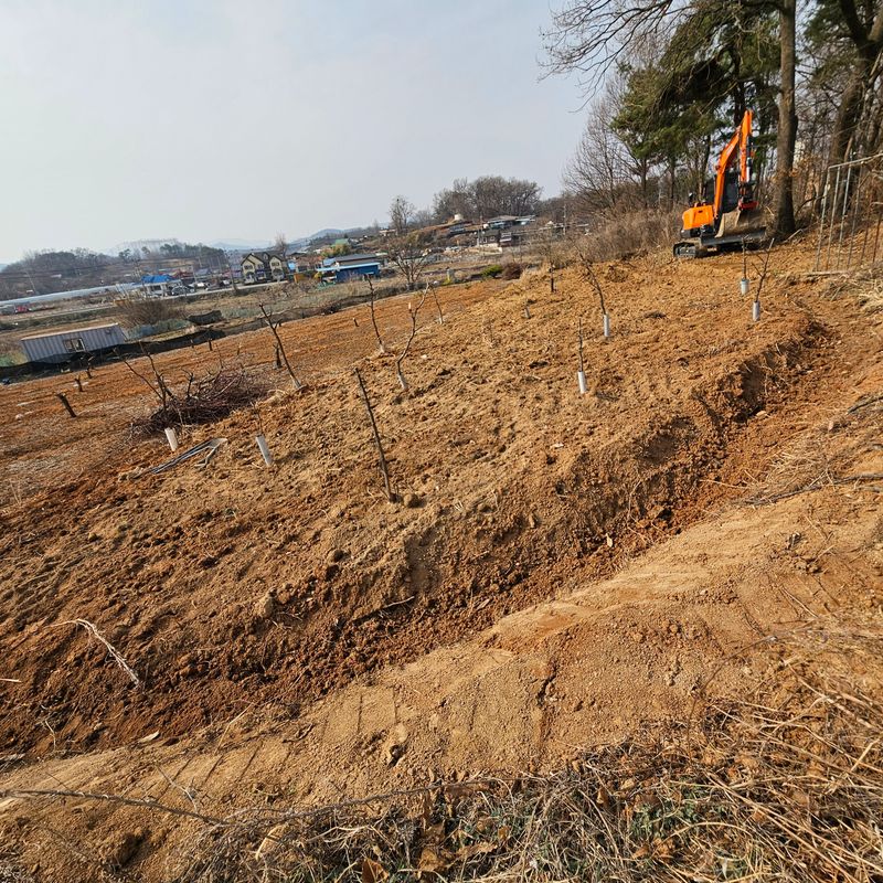 오십평 남짓한 대추밭에 어제 장비로 한삽씩 파논 자리에 사과대추 4그루 단감 묘목 2그루 추가로 심었어요. 대추는 23그루 감은 5그루가 식재되어 있어요