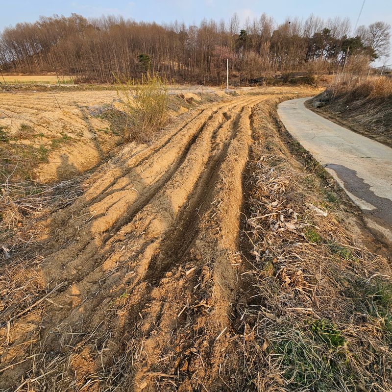 4월 2일부터 03일 까지 로타리 작업과 휴립기로 만든 고랑이 삐뚤빼뚤입니다 밭 언저리에 있던 흙을 치우고 안사람 전용의 텃밭입니다 고랑이 삐딱해도 힘이 딸려 농기계 컨트롤이 힘들어서 그냥 쓰기로 했어요 #영농일지