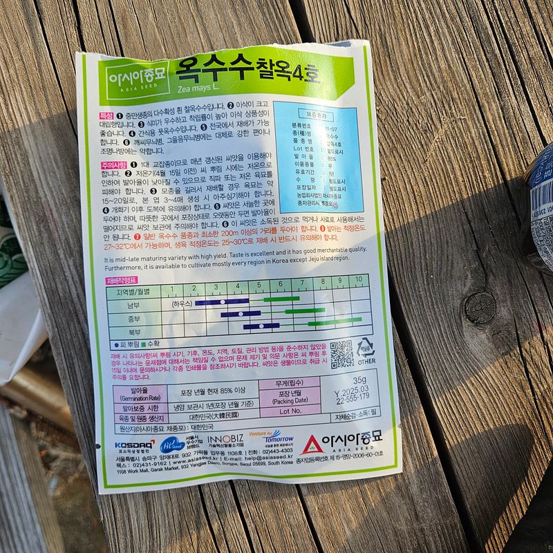 어제 두둑을 만든 곳에 비닐을 혼자 씌우느라 뱃살과 씨름을 하였다. 점심후 옥수수 씨앗을 두고랑 심었고 강낭콩을 네고랑 심었다. 새가 콩씨를 파먹지 못하게 농약을 묻혀 파종했다. #영농일지
