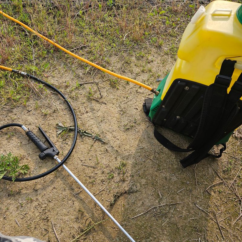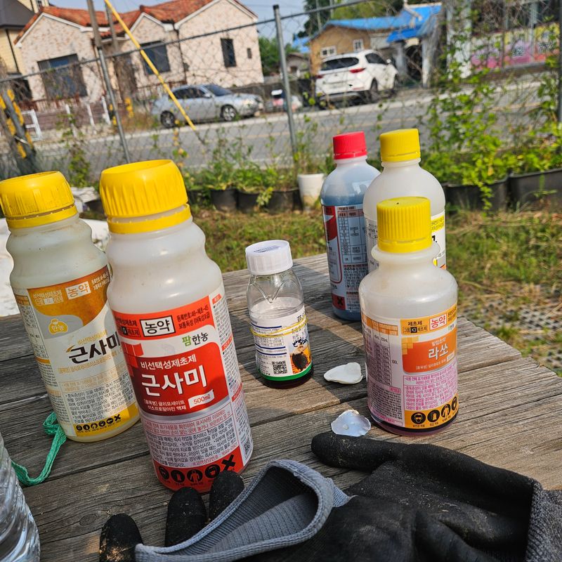 백합밭에 쑥대들이 군락을 이루어서 근사미 제초제를 혼자 살포하였다. 혼자 살포하다보니 속줄이 걸리면 다시 가서 소독줄을 풀다보니 3시간이 걸렸다.
