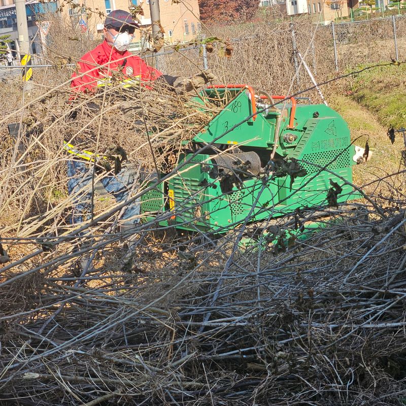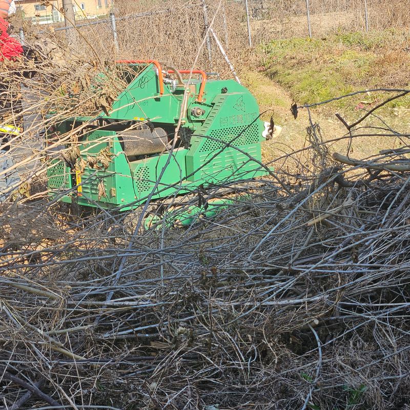 이주전에 면사무소에 신청한 영농 부산물 파쇄작업이 오늘 오후에 이루어졌다 뽕나무와 무화과 가지들이 30분 안에 파쇄작업이 이루어진다 #영농일지