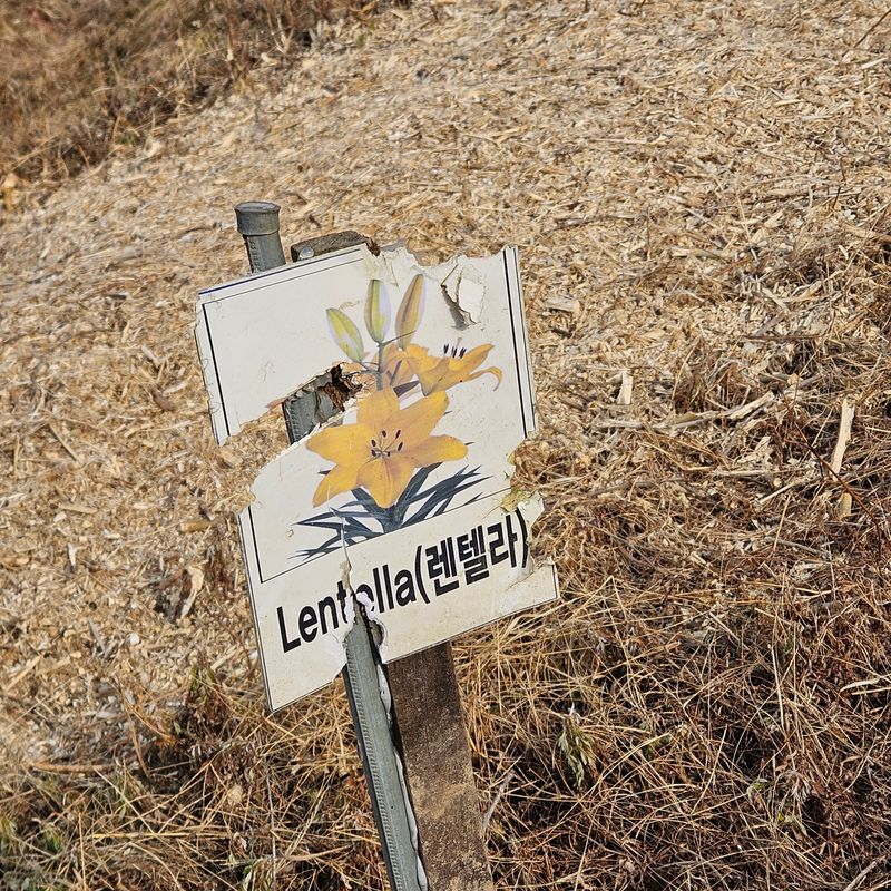 백합밭의 백합이름을 붙여놓은것이 지면과 가까워 예초기 칠때마다 명판이 부숴진다. 고추지지대에 실리콘 쏴서 높이 올려놨다 #영농일지