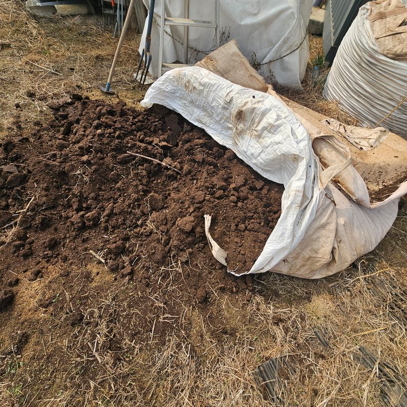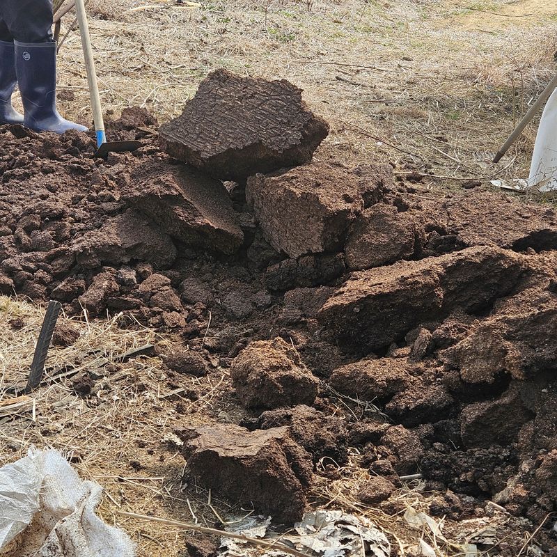 잔대밭과 고구마 감국화 재배예정지에 3-4년된 곤충똥을 살포했습니다. 두사람의 인력협조가 있었지요