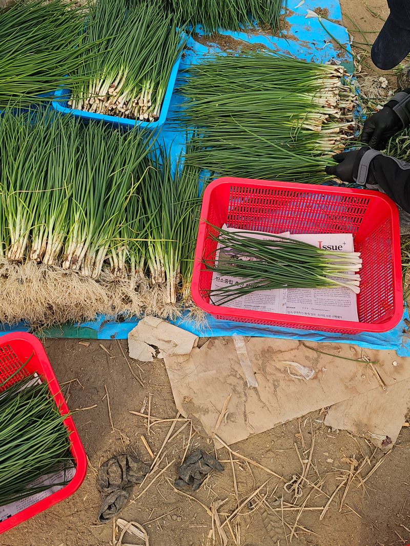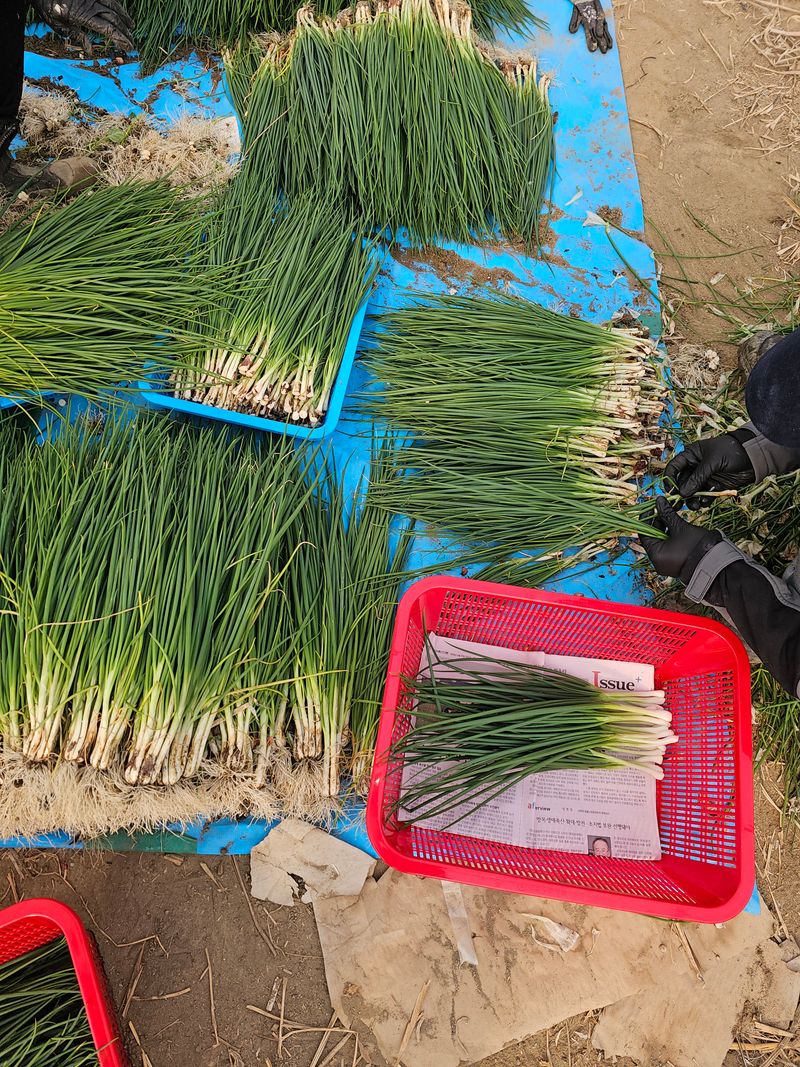 오늘은 쪽파를 까고있어요 눈에서 눈물이..