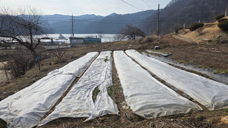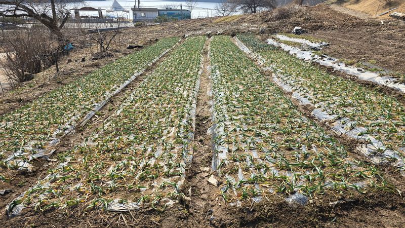 마늘 & 양파 이불 걷기 겨울내내 덮고 있던 부직포 이불을 걷어서 따뜻한 봄빛을 볼 수있도록 하였네요 부직포 덮기 전에 제거 하였던 잡초가 그사이 자라서 마늘과 영양분 경합을 방지 하기 위해 잡초 제거 후 살균제와 NK비료 추비를 주었습니다 추비는 가능하...