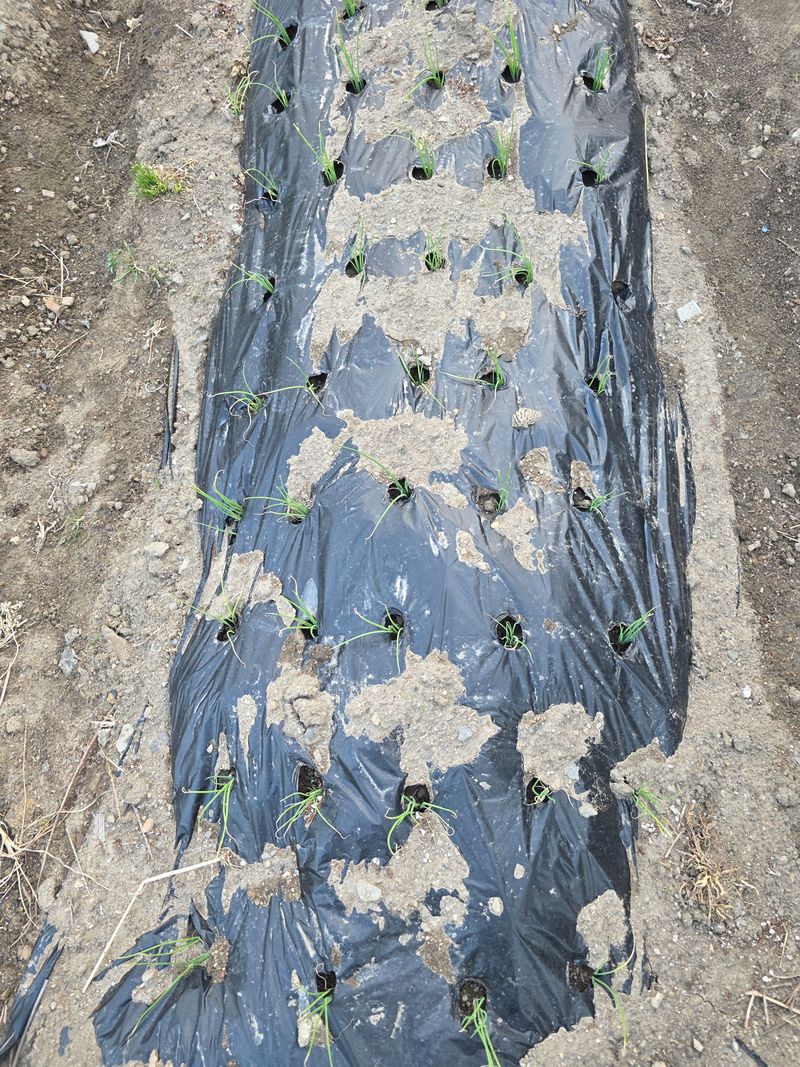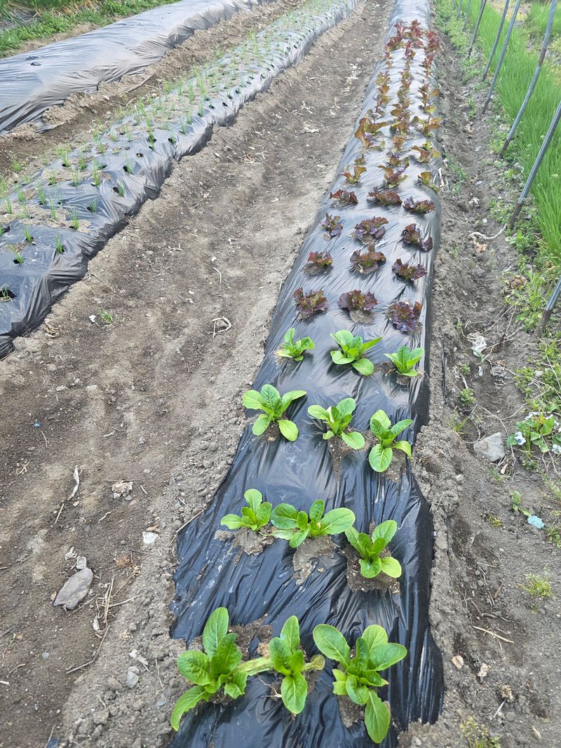 텃밭에 비닐멀칭해서 상추 모종 1판 심었다.