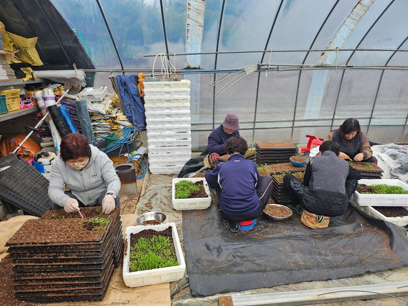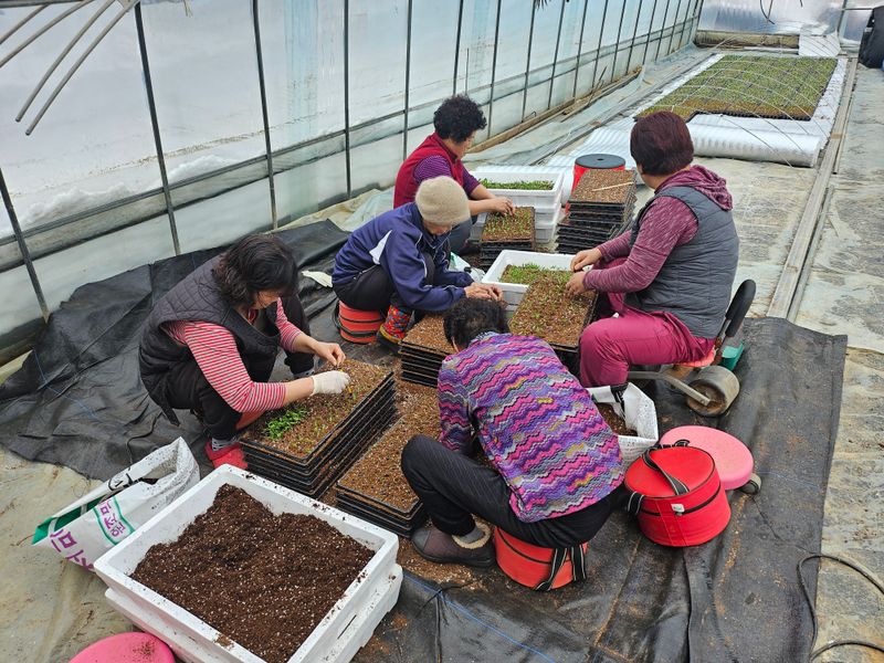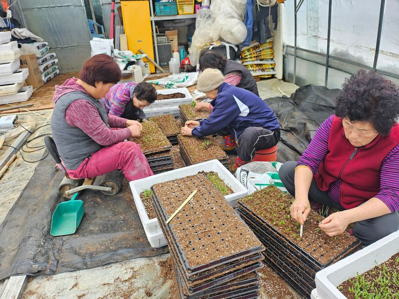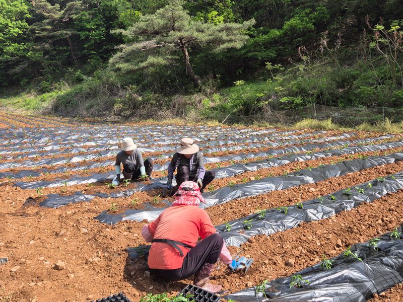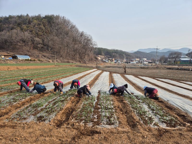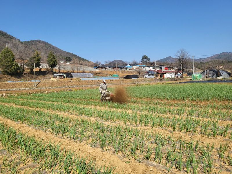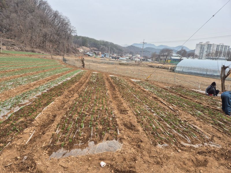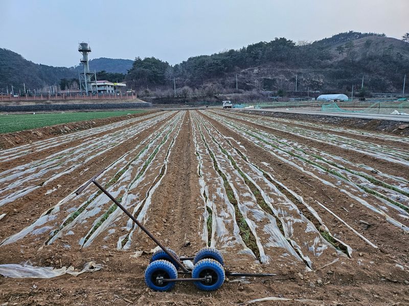 3월 10~11일 까지 마늘 비닐 구멍 뚫기 2200평 아줌마 21명 2,205,000원