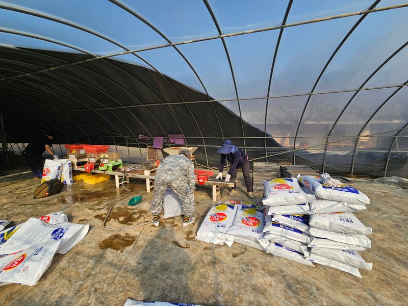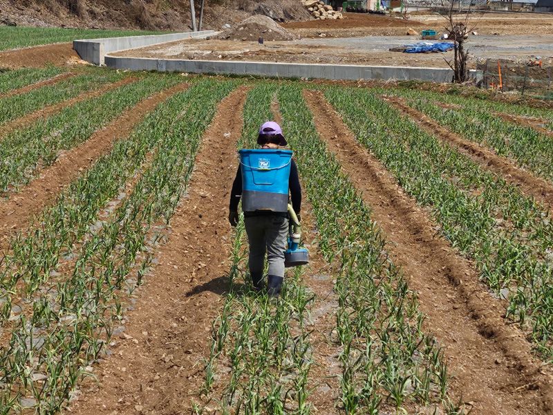 마늘 유인작업및 비료살포 요소 50포 구입 26포 살포