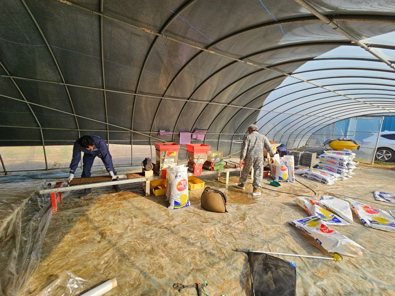 볍씨 파종했어요 해들벼 40kg 200판 했습니다