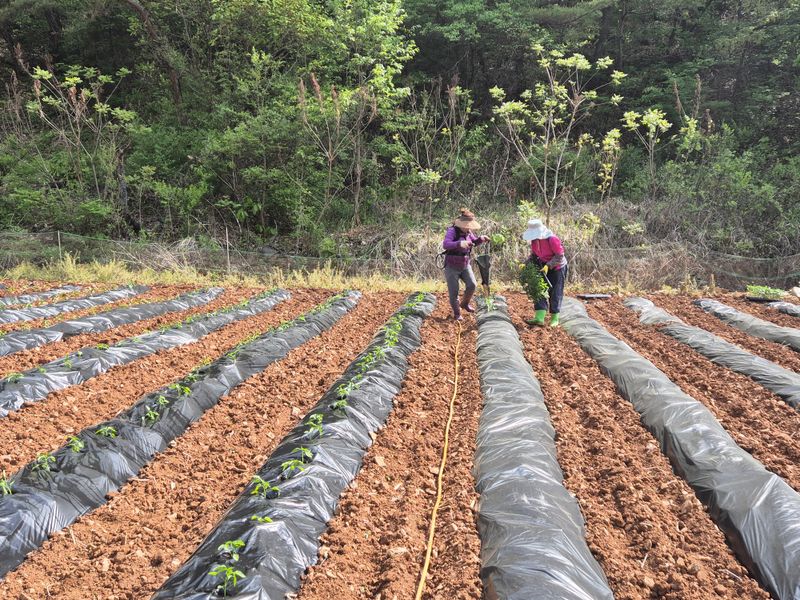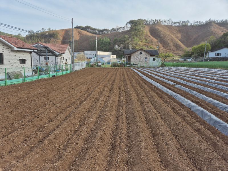 고추밭 골키고 비닐 피복 했습니다 싸이메트 6봉 살포