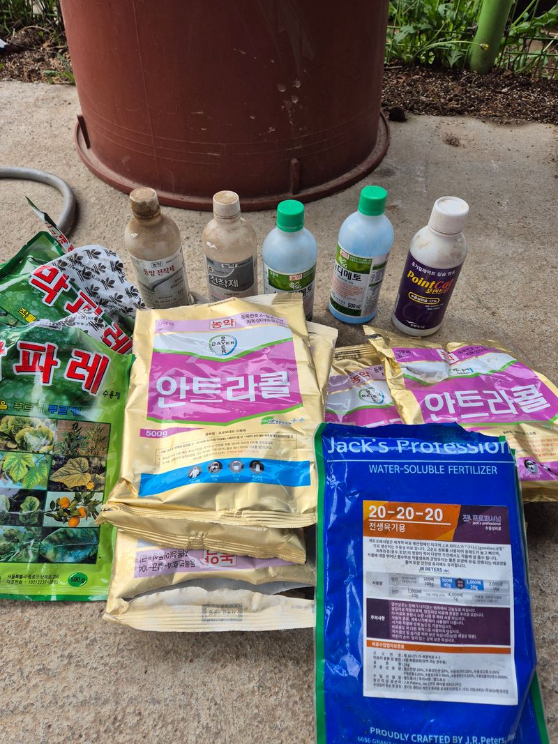 마늘밭 1차방제 안트라콜 (500g)5봉 막파레 (500g) 3봉 살충제 삼공디메토(500ml) 2병 영양제(20-20-20) 1봉 전착제(500ml)1병