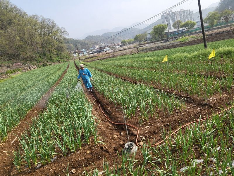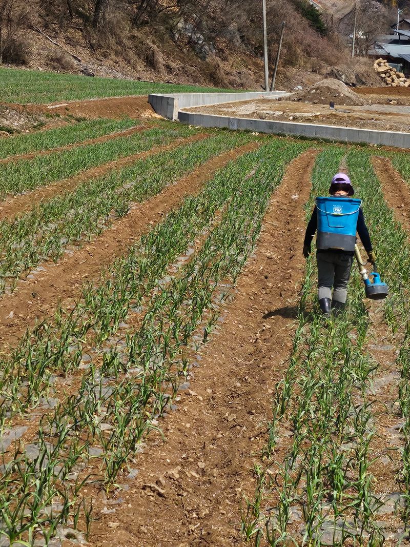 마늘밭1차 약제 살포 만루포4병 살림꾼4병 전착제 2병