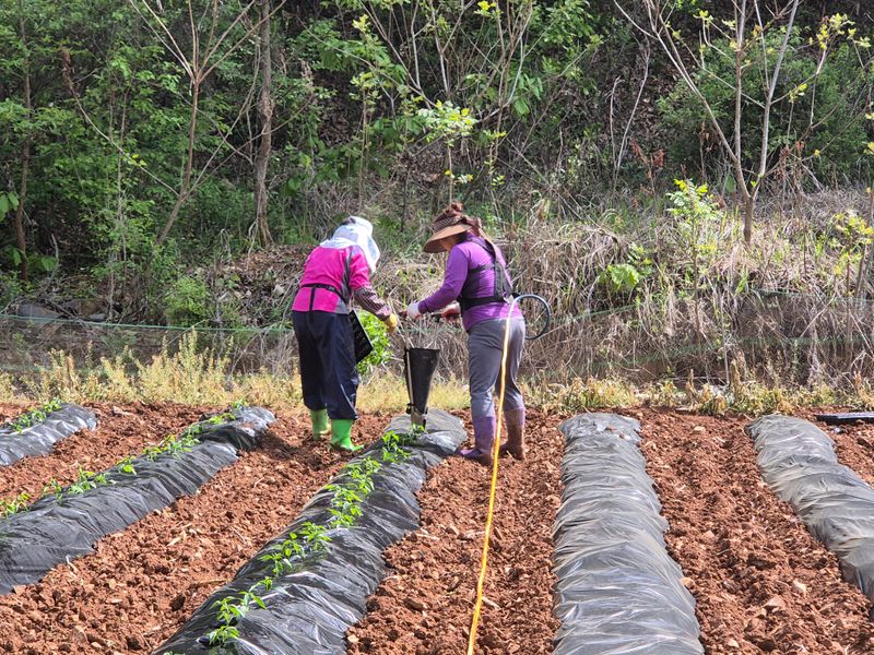 고추밭 비료살포 신비로 48포 원예비료 13포