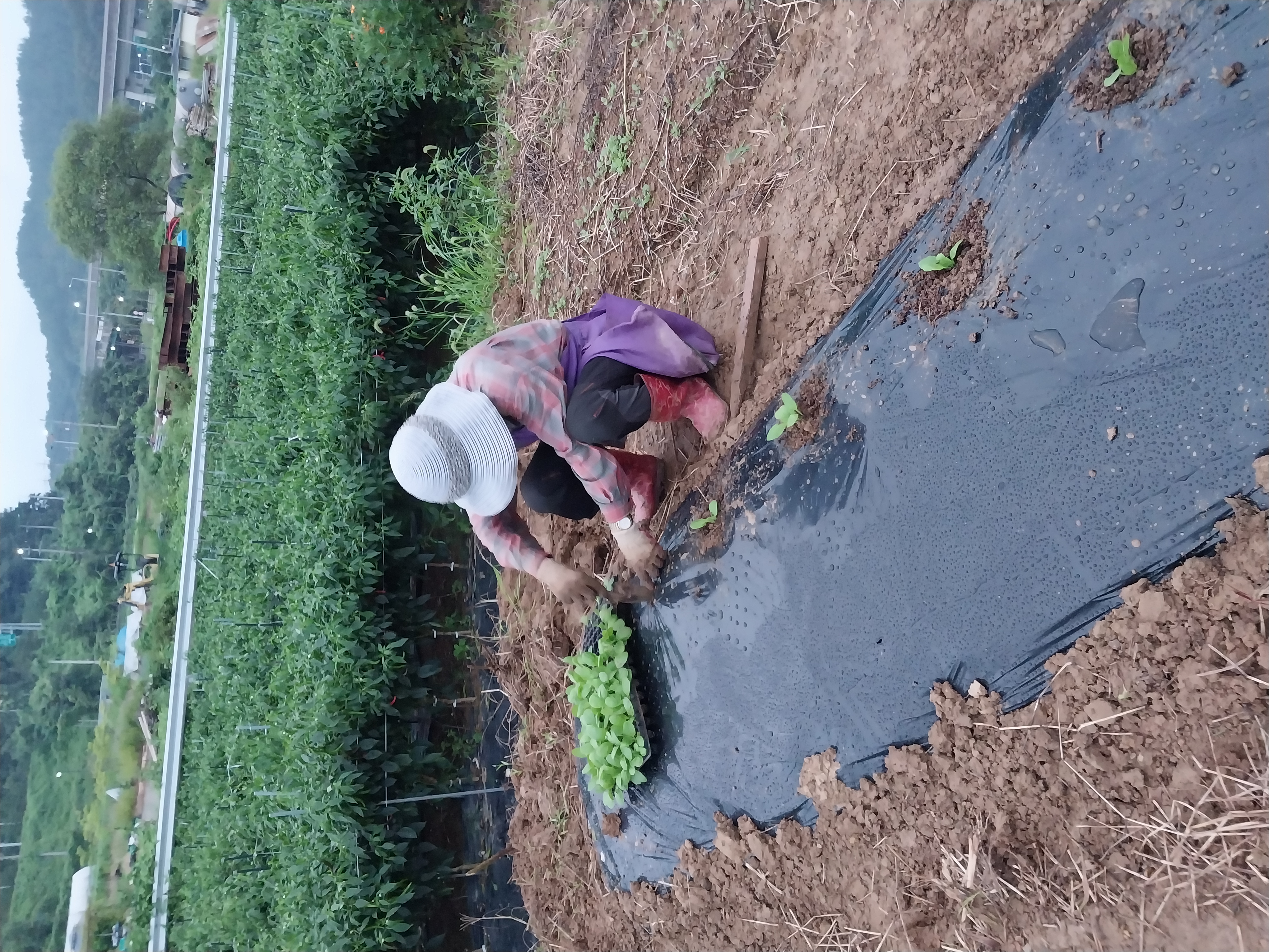 그동안 마런하고 비닐 멀칭한 이랑에 아내와 같이 포트에서 길러진 가을배추 모종 66포기 옮겨 심기중 어둠이 깔려 나머지는 내일에 하기로 하고 끝냈다.