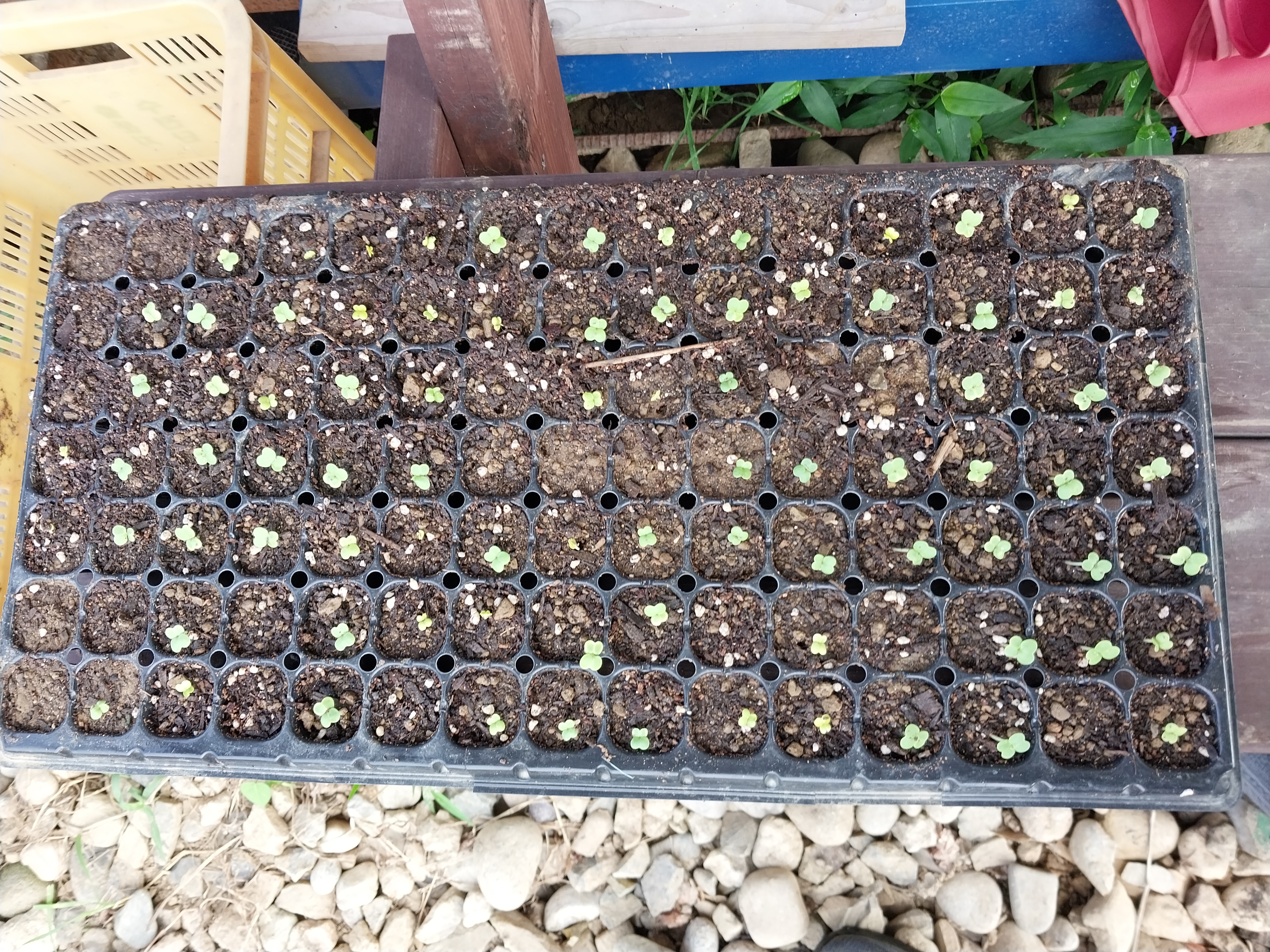 가을배추 씨앗 100포기를 포트에 넣었더니 3일되어 싹이 텃다.