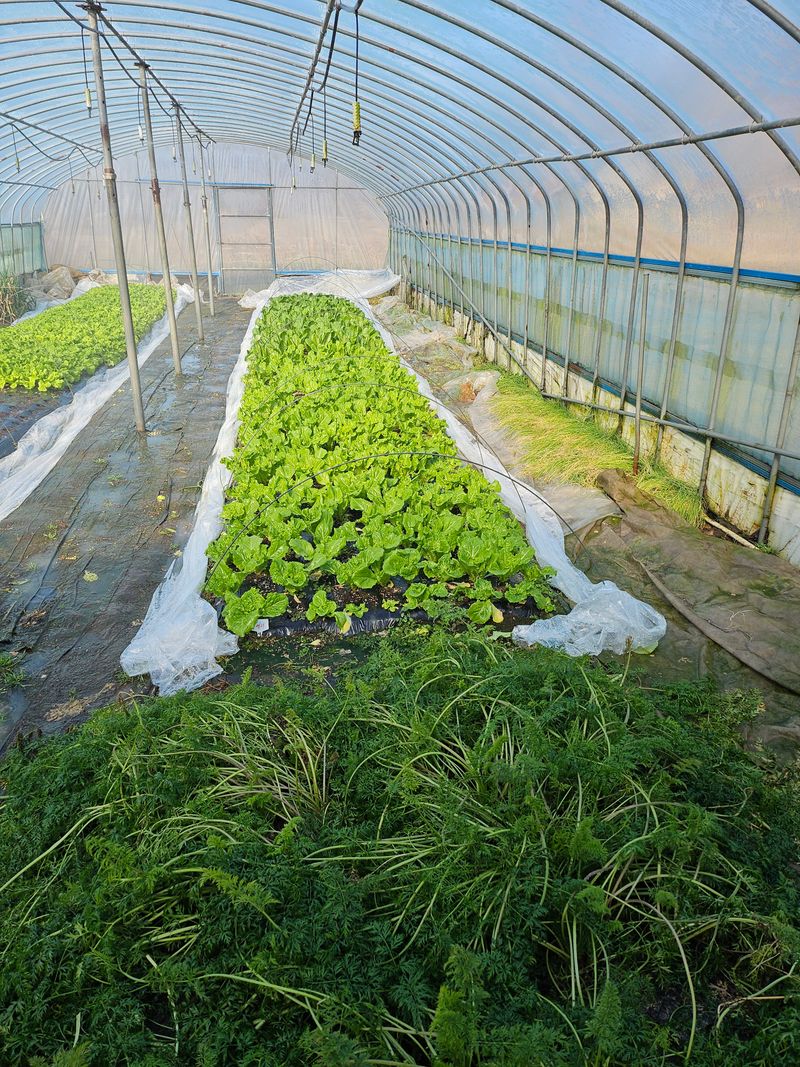 유럽 생채 상추 토경 하우스에 심어 서 잘 자라고 있어요.