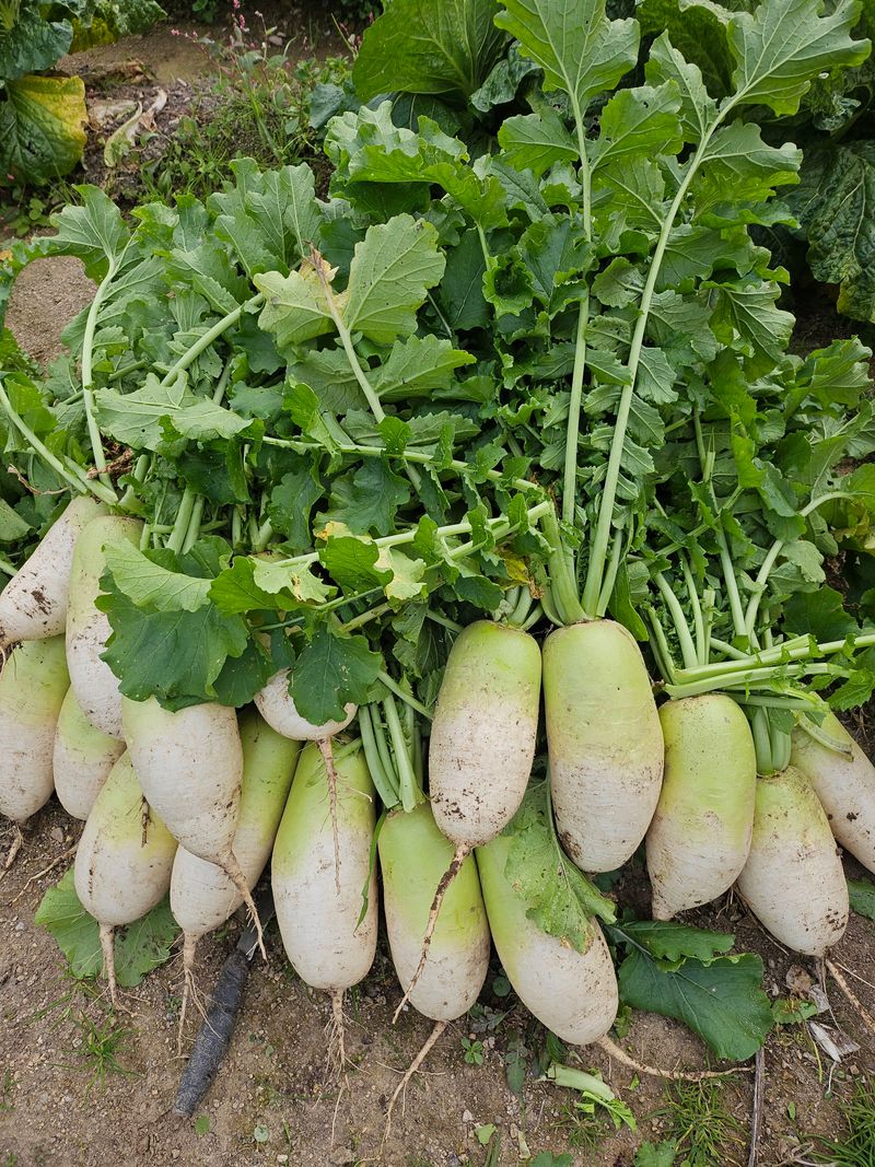 날씨가 추워진다고 해서 겨울에 저장두고 먹을 무 수확 했어요. 올해는 큼지막 하게 잘 잘았네요.