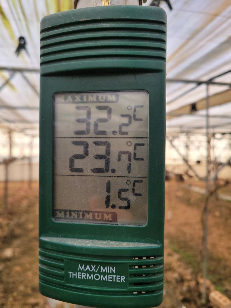 날씨 맑음 최고 32° 최저 0.2° 지온 11° 추가로 물주기 스프링쿨러 2동씩 30분 몰약1병: 물400L 관주 대공 4동씩 1시간씩 5-8동+뒷통로 1~4동