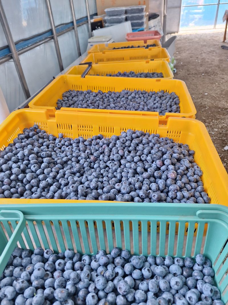 블루베리 수확70키로넘게. 수확하고 넘힘들어 10키로는 냉동시키고 배달했는데 더달라고. 많이부족했음 휴가다녀온후에 병이나서 넘힘들었음