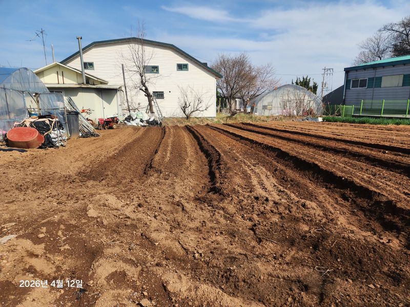 감자 심을 준비를 하는중입니다 석회고토와 비료를 동시에 살포하면 열이 발생한다고 해서 일단 석회고토를 살포한후 경운작업을 하고 일주일뒤에 퇴비ㆍ비료ㆍ살충ㆍ균제 살포후 로타리 작업을 실시하였고 3일후 비닐멀팅 할려고 합니다