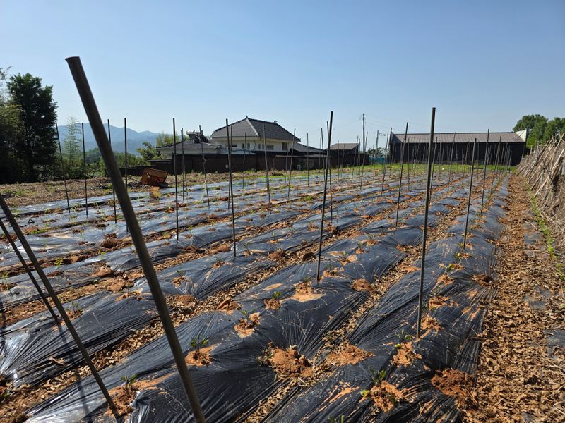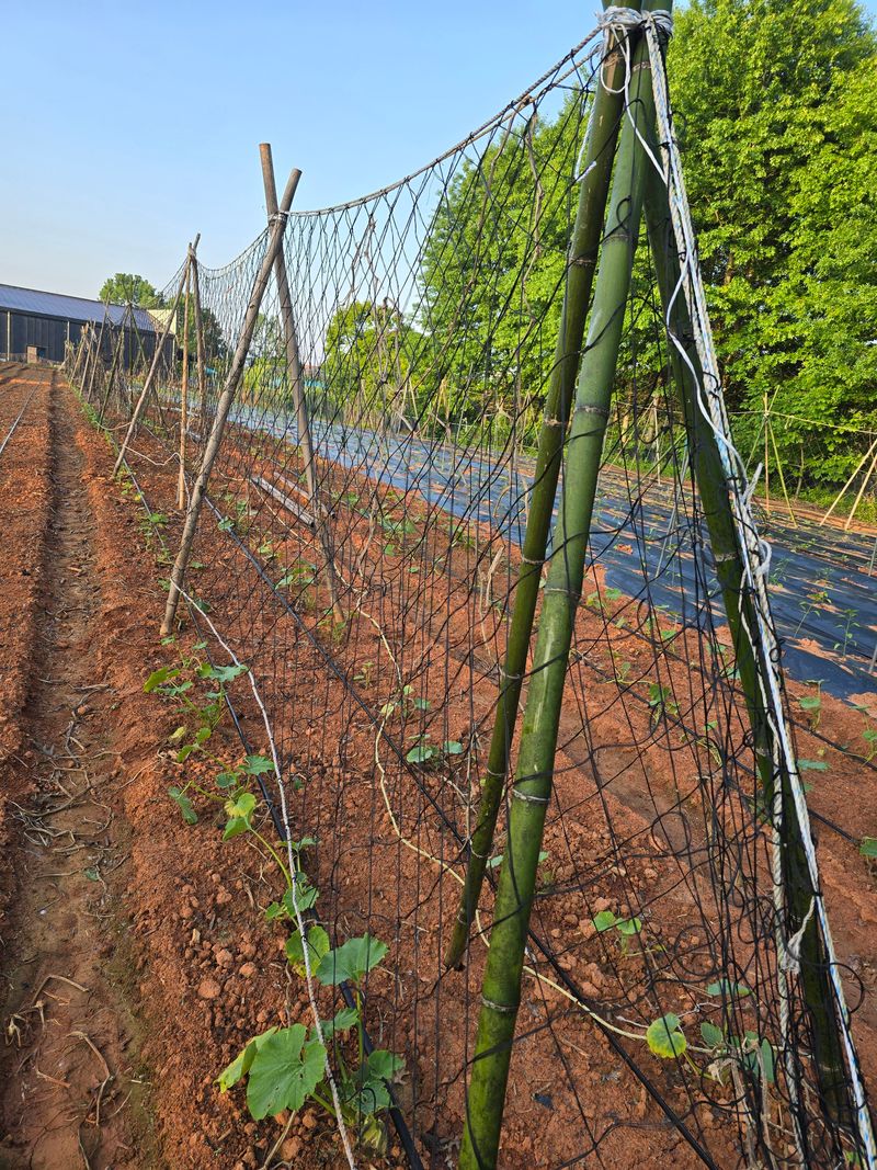 5.5 정식하고 대나무지주대와 해태망으로 유인 작업중 입니다
