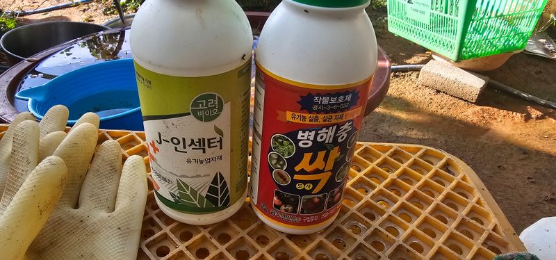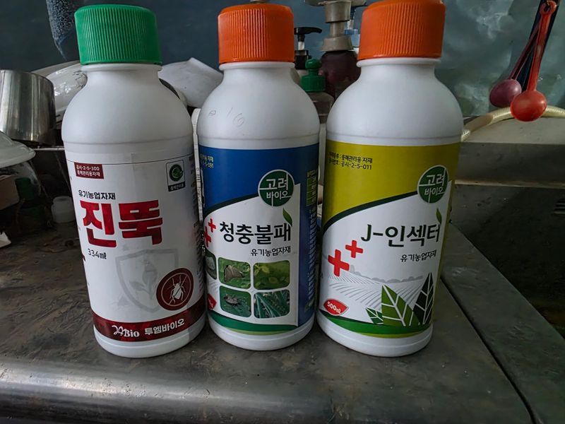 에제 구입한 유기농약제와 비개인틈에 종합살충.살균제 방제 함 탄저가 번지지 않기를 바라며.
