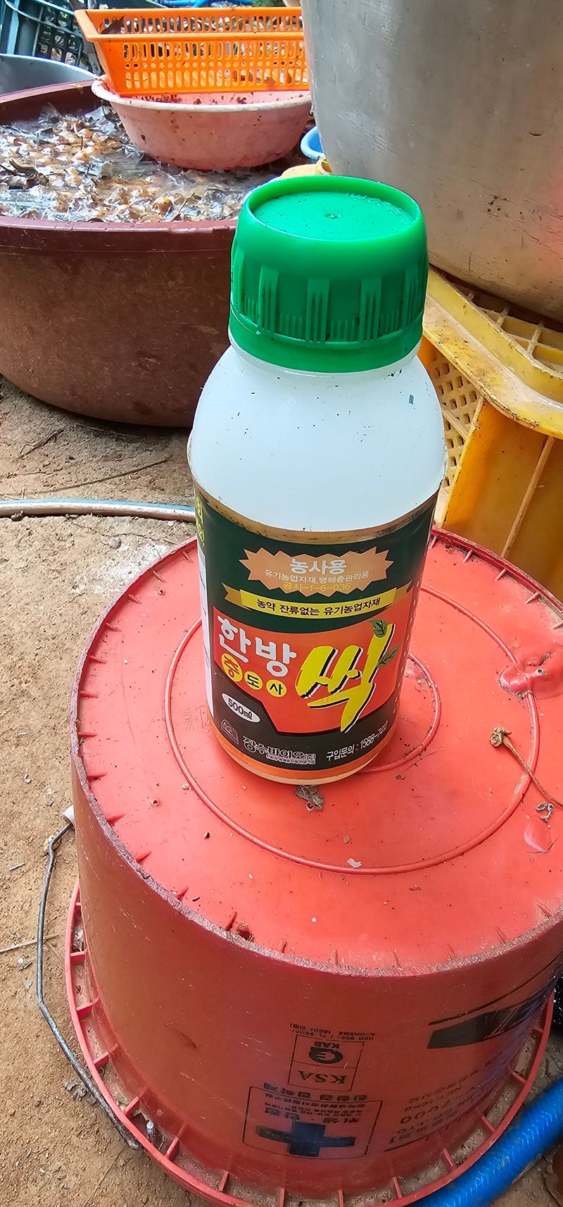 방제 유기농자재 모두싹청 충전식분무기로 2통 살포했어요.